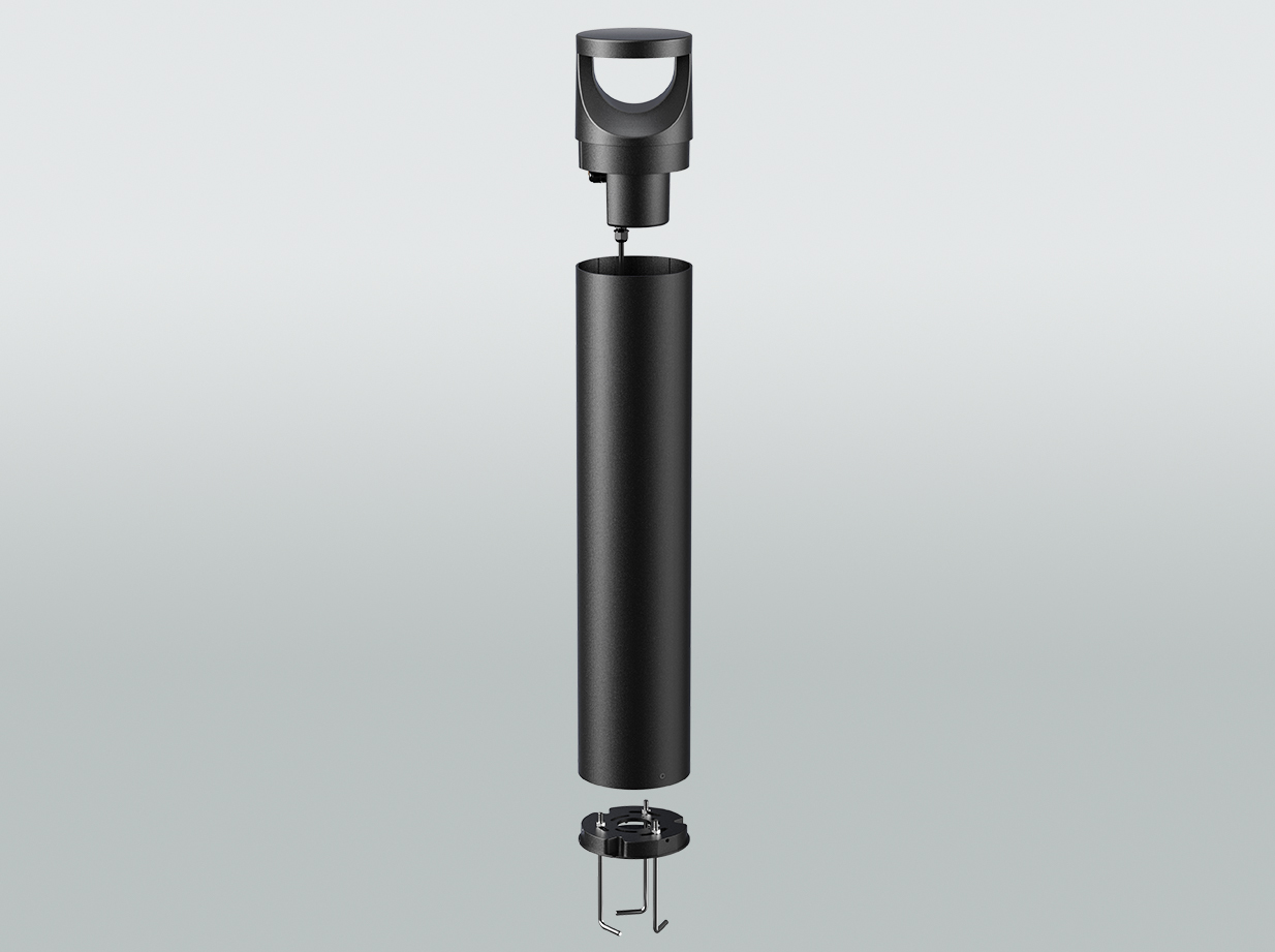 Formschöne Pollerleuchte im modernen Design als Baukastensystem. Lichtkopf aus korrosionsbeständigem Aluminium-Druckguss, seewasserbeständig pulverbeschichtet, Korrosionsschutzklasse C4-M. Klare Abdeckung aus Polycarbonat. Blendfreie Lichtlenkung über weißen Sekundärreflektor. Separat bestellbare Standrohre in 2 unterschiedlichen Höhen inkl. Montageplatte und Betonankern. Serie: POLKO2 Farbe: RAL 9017 schwarz, matt Durchmesser: 165 mm Höhe: 500 mm mit Standrohr 500 Höhe: 900 mm mit Standrohr 900 Gewicht: 5,2 kg mit Standrohr 500 Gewicht: 7,2 kg mit Standrohr 900 Lichtquelle: LED Farbtemperatur: 3.000K, 4.000K, 5.000K einstellbar über Dipschalter Farbwiedergabeindex: 80 Farbtoleranz (McAdam) (McAdam-Ellipse): <5 SDCM 2 Lebensdauer: 78.500 h (L80/B10) @Ta=25° C Bemessungsleistung: 22 W (=100%) Leistung einstellbar über Dipschalter: 30%/50%/75%/100% Bemessungsleuchtenlichtstrom: 1.920 lm (100%) Systemeffizienz: 87 lm/W Lichtaustritt: indirekt Abstrahlwinkel: 360° rotationssymmetrisch Betriebsgerät: schaltbar Spannung: 220 - 240 V / 50 Hz, 60 Hz Überspannungsschutz: 2kV Schutzklasse: I Einschaltstrom / Einschaltzeit: 70 A / 150 µs Klirrfaktor (THD): 10 % Schutzart: IP 66 Umgebungstemperatur: -30°C bis + 50°C Schlagfestigkeit: IK10 Konformitätszeichen: CE Zubehör: Standrohr 500 = Art.-Nr. POLZUBR050002 Zubehör: Standrohr 900 = Art.-Nr. POLZUBR100002 Fabrikat: emsLICHT AG, Geeste-Dalum Typ: POLKOPR161992 Kontakt: Mail an vertrieb@emslicht.de oder Tel.: 0 59 37 / 7 07 89 - 0